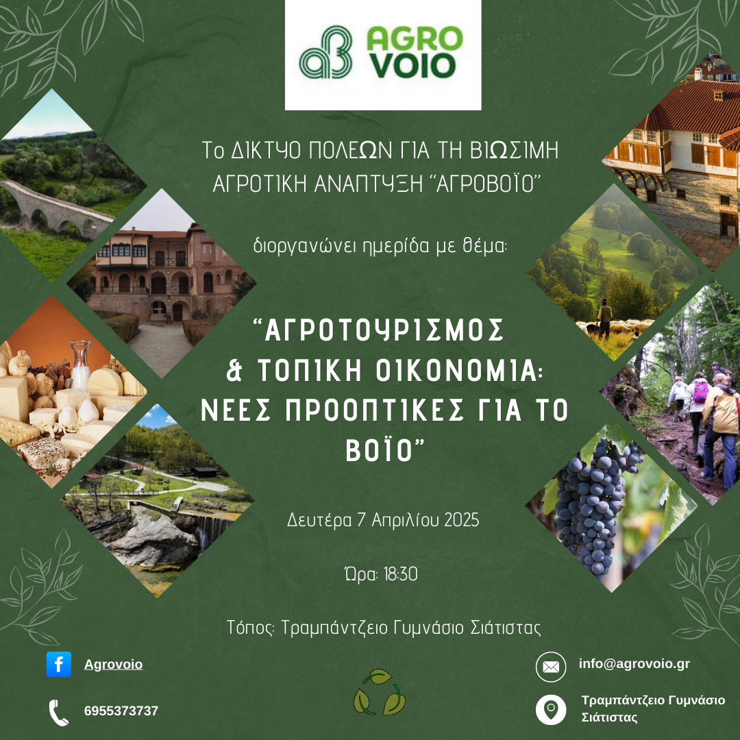 ΑΓΡΟΤΟΥΡΙΣΜΟΣ & ΤΟΠΙΚΗ ΟΙΚΟΝΟΜΙΑ : ΝΕΕΣ ΠΡΟΟΠΤΙΚΕΣ ΓΙΑ ΤΟ ΒΟΪΟ 31 Μαρτίου 2025 | Δεν υπάρχουν Σχόλια | Ανακοινώσεις